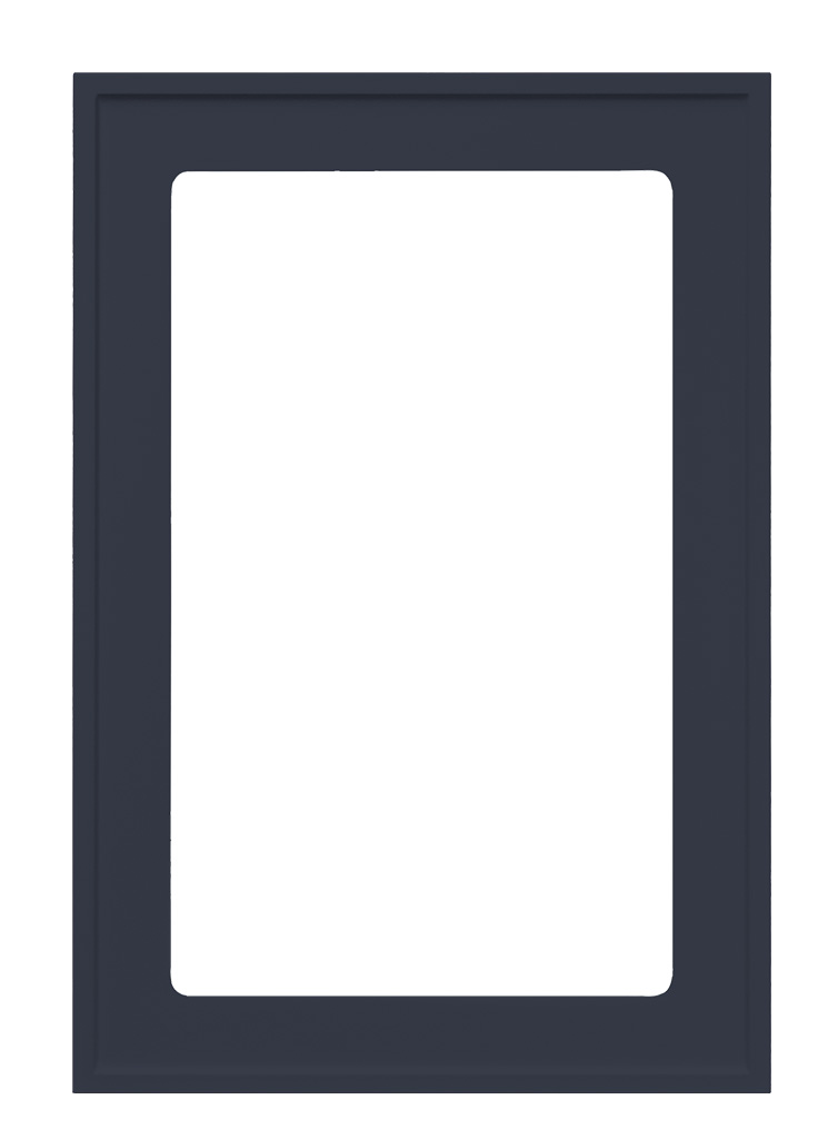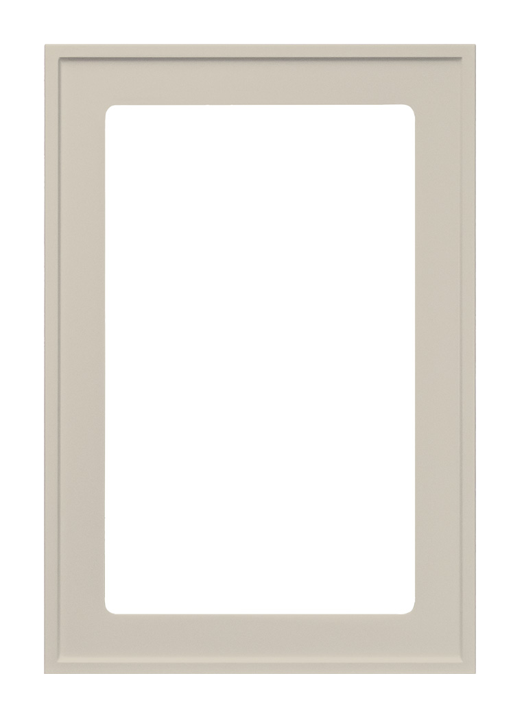 Our Frame Doors are designed for use with glass or other inserts, for a beautiful, custom look. The back of the frame will be routed for a retainer strip to hold your insert. Several feet of clear retainer strip will be provided with your order. Subtract 3.425″ from the width and height of the door to determine glass size with 1/16″ clearance on all sides.